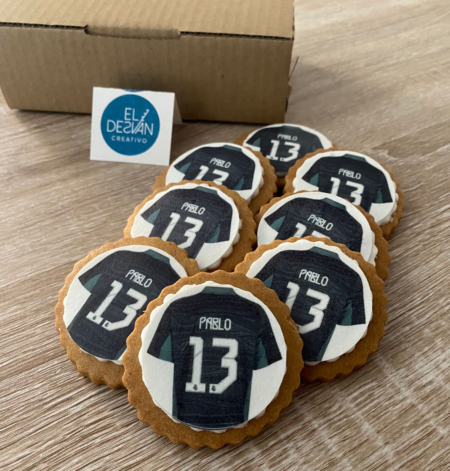 Caja de 15 galletas (6,5 cm) personalizadas con fondant y oblea impresa.
