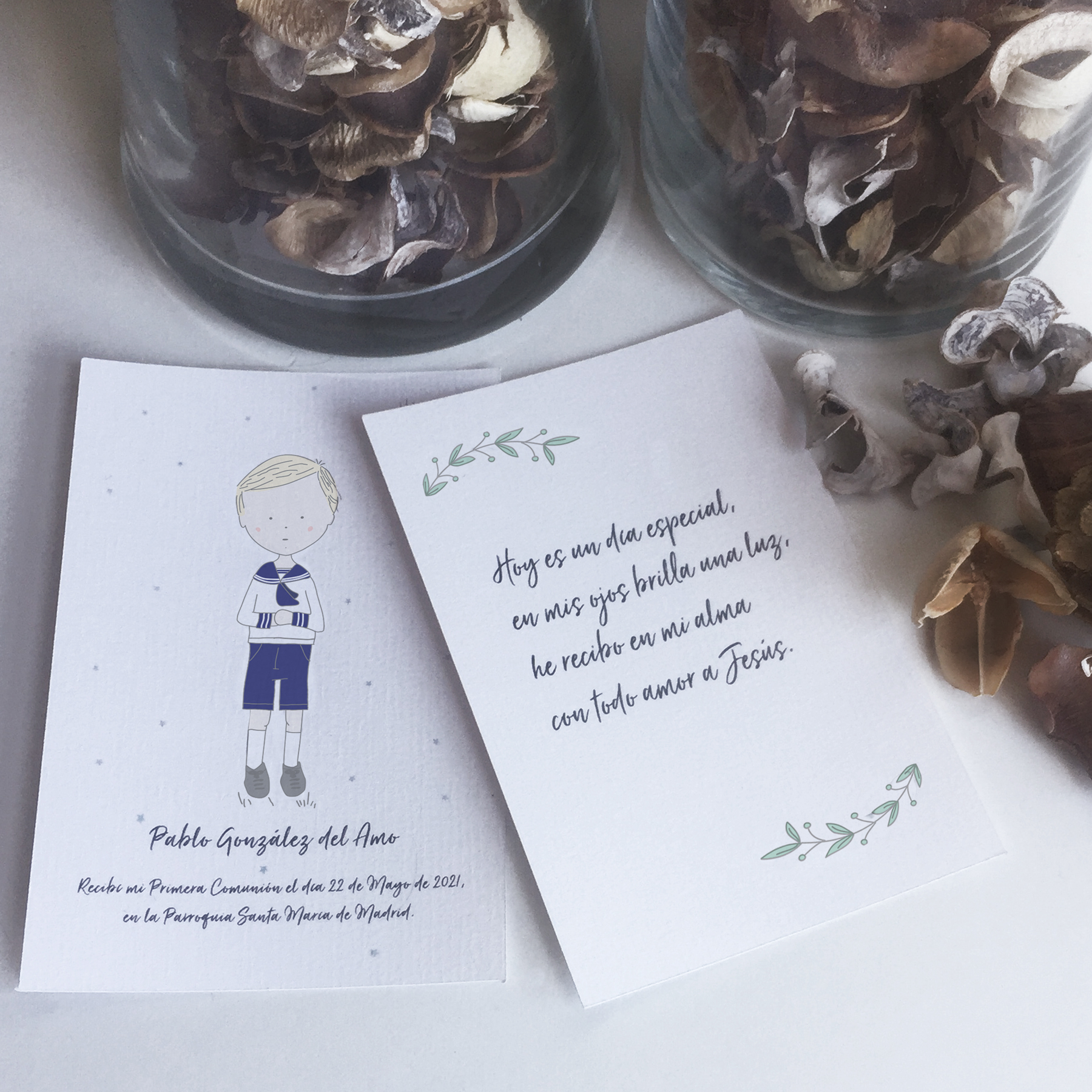 Recordatorio doble (el Recordatorio y la Oración) impreso en papel verjurado blanco de 240 gr.