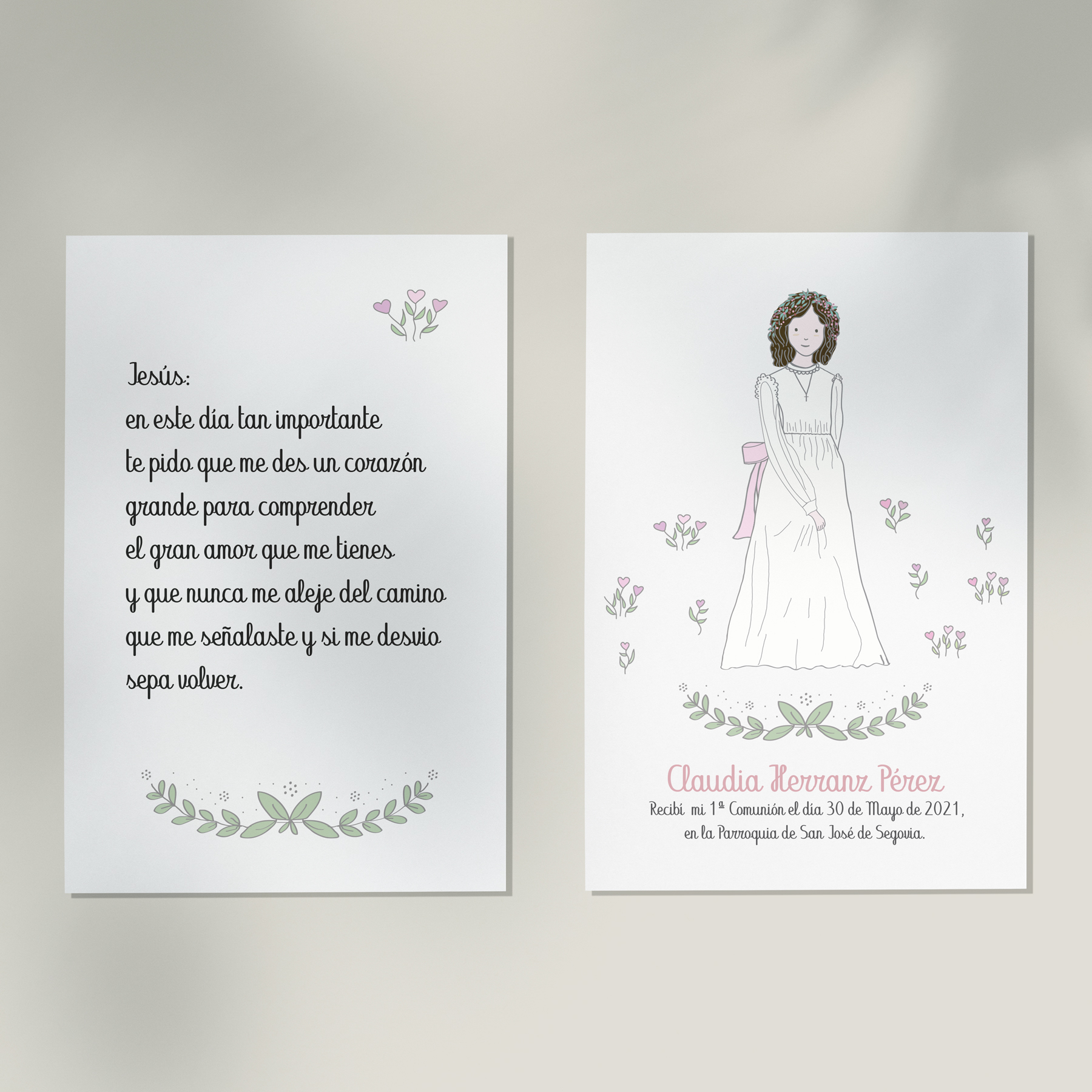 Recordatorio doble (el Recordatorio y la Oración) impreso en papel verjurado blanco de 240 gr.